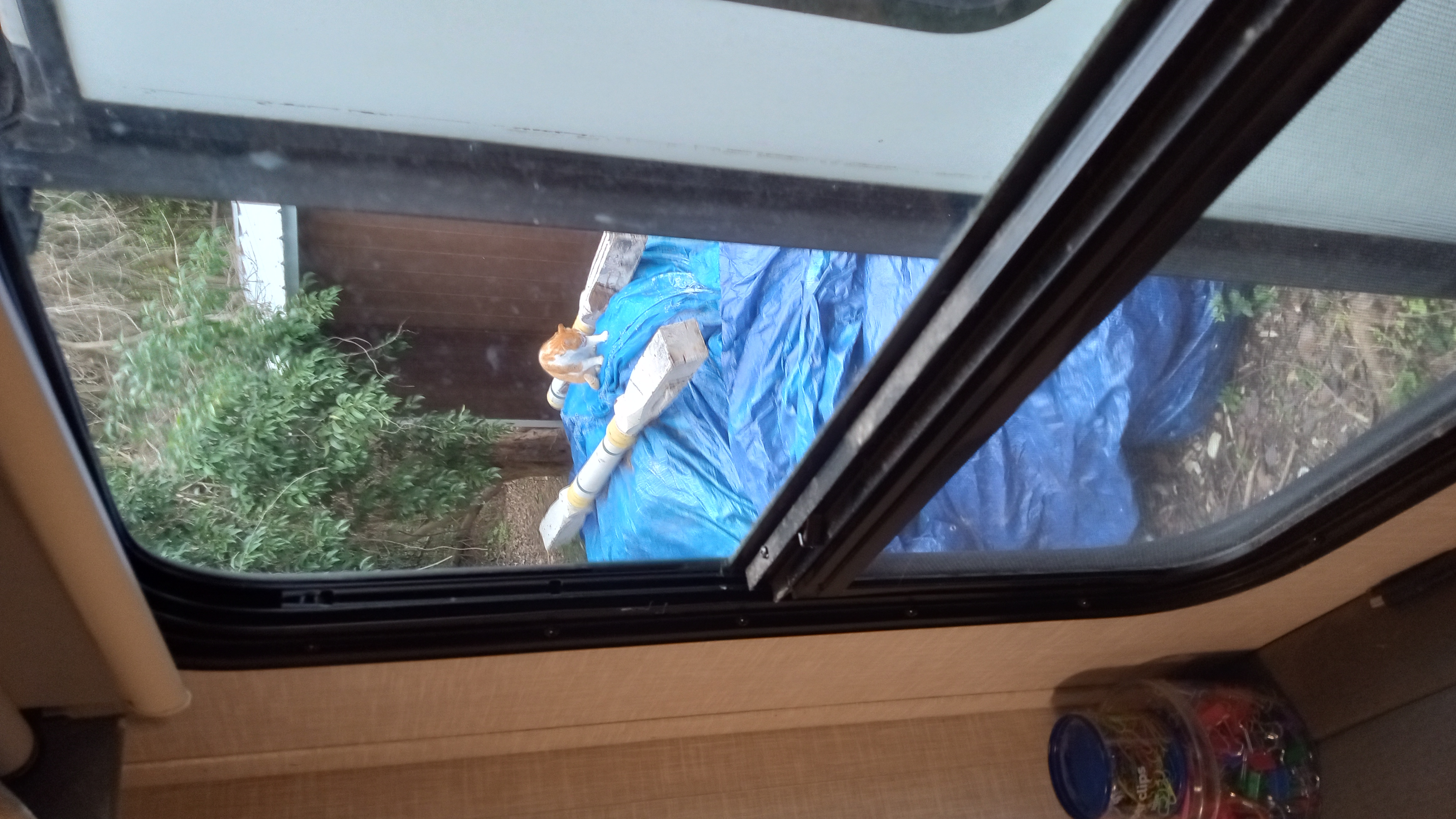 2 photos of Squeaky on the Oldsmobile : revised 2023Dec23