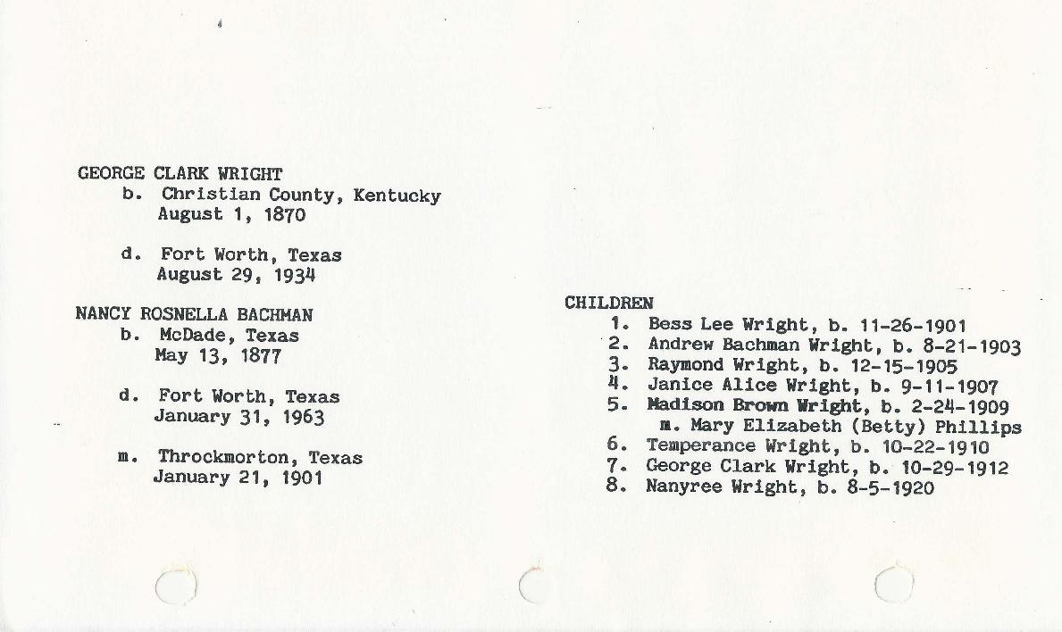 George Clark Wright born in Throckmorton Texas 1870 wed