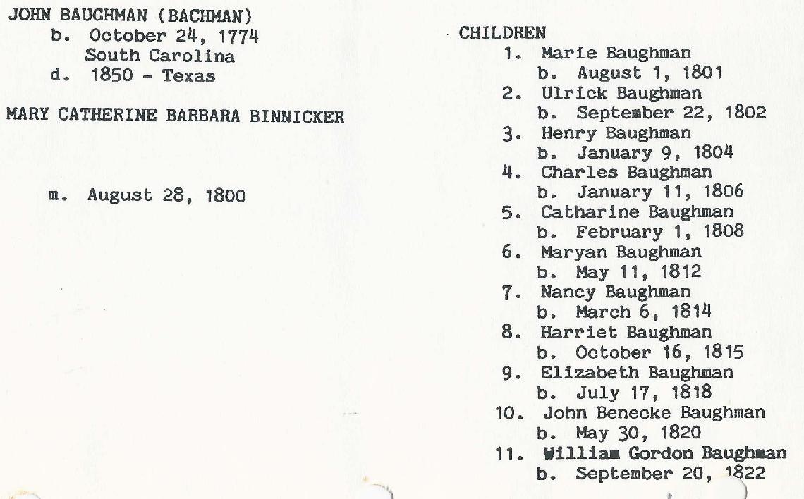 John Baughman born in Orangeburgh South Carolina 1774 wed